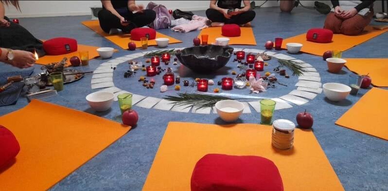 Zazwyczaj raz w miesiącu w okresie pełni księżyca spotykamy się w grupie 9 kobiet . Za każdym razem jest inny program spotkania i tematyka, w zależności od miesiąca i pory roku. Dopasowuje medytacje, wizualizacje, rytuały, ćwiczenia z rozwoju osobistego i kreowania . W kręgu może wsiąść udział każda kobieta, która jest gotowa przestrzegać zasad. Jeżeli pogoda dopisuje spotykamy się przy ognisku. Każde spotkanie składa się ze stałych elementów. Prowadząca troszczy się by przestrzeń była przytulna, nastrojowa a przede wszystkim bezpieczna i komfortowa. Jeżeli krąg odbywa się przy ognisku, miejsce jest zdala od ludzkich oczu a adres znają tylko uczestniczki. To polana pomiędzy drzewami na prywatnym terenie, gdzie można spokojnie zaparkować swoje auto. Ubikacje i bieżąca woda są w zasięgu ręki . Pośrodku stoi metalowa beczka na ognisko a my siedzimy na ławkach. Jeżeli zaskoczył by nas deszcz w pobliżu jest zadaszenie pod którym można rozpalić w kominku i tam kontynuować spotkanie. Kręgi odbywające się w budynku mają miejsce w tym samym pomieszczeniu w którym prowadzone są zajecia jogi. Pośrodku stoi piękna misa z wodą i kwiatami a dookoła świeczki symbolizujące 13 pełni księżyca. Następnie rozłożone są karty orakel, z których po medytacji można jedną wylosować. Po zewnętrznej stronie kręgu leżą maty do medytacji. Krąg rozpoczyna się od oczyszczenia energetycznego za pomocą np. Paulo santo, przypomnienia zasad i tematyki. Podczas spotkania używamy praatstok – to ozdobiony kij, który daje możliwość wypowiedzenia się. Mówi tylko ta osoba która trzyma patyk. Jeżeli nie masz ochoty rozmawiać danej chwili – nie musisz, wystarczy że to zakomunikujesz ( trzymając patyk w dłoni). Jeżeli zakończyliśmy wypowiedz używamy słowa AHO* W każdym programie występuje medytacja z wizualizacją , czasem transcendentalna podróż , helling (uzdrawianie), rytuały (np. zapalnie świeczki z intencja) oraz ćwiczenia z rozwoju osobistego, kreowanie i schering ( dzielenie się drobnymi upominkami). Szczegóły są podawane przed każdym kręgiem. Na koniec zamykamy krąg. Nie ma obowiązku uczestnictwa w każdym spotkaniu. Każda nowa uczestniczka ma możliwość dołączenia do prywatnej grupy na WhatsApp gdzie dziewczyny jako pierwsze dostają informacje o kolejnym kręgu.